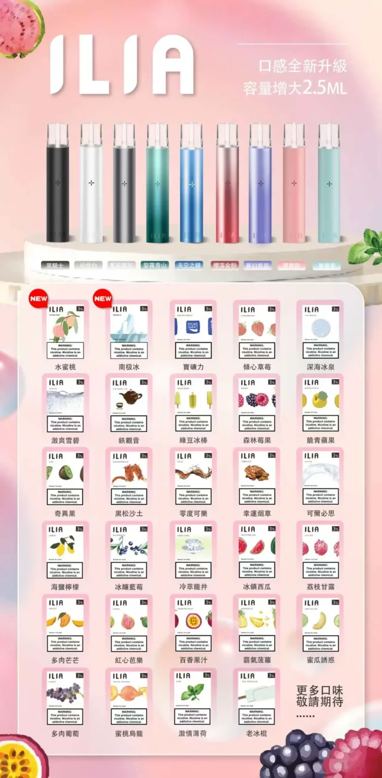 ILIA 一代煙彈,2.5mL 容量,27 種經典及水果口味,兼容通用一代主機。