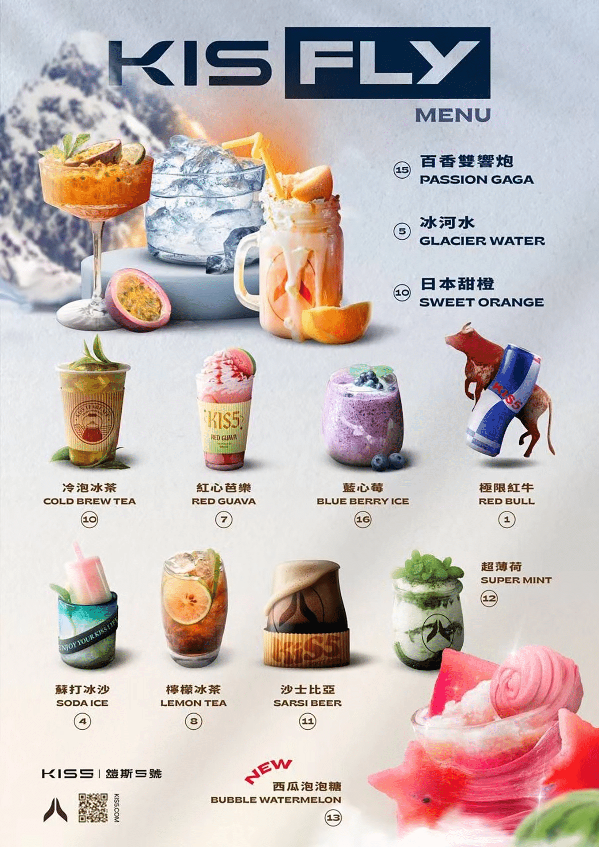 紅牛 ,甜橙 ,蘇打 ,冰河水 ,芭樂 ,冷泡綠茶 ,沙士啤酒 ,薄荷 ,西瓜 ,龍井 ,百香果 ,藍莓 ,葡萄 ,香蕉 ,黑加侖 ,水蜜桃 ,可樂 ,霸王茶姬 ,玫瑰花茶 |