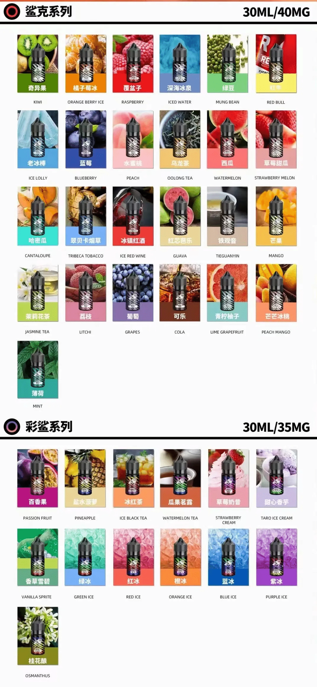 SALT SHAQ鯊克系列煙油,30mL,40mg尼古丁鹽,50/50 PG/VG,17種口味如可樂、哈密瓜、水蜜桃烏龍茶。高純度原料,約9000口,台灣電子煙油現貨